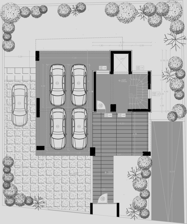 This elegant five-storey building, raised on pilotis and complemented by a basement, attic, and one-pitched roof, has been thoughtfully designed to combine functionality, aesthetics, and architectural harmony.