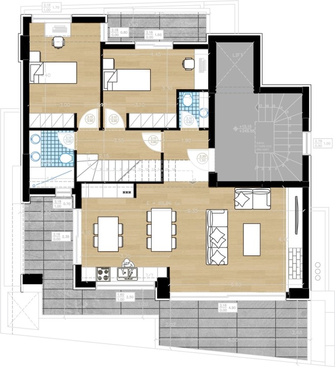 Includes two parking spaces and a basement storage room. - 5th Floor Maisonette (Top Floor + Attic) – 149.66 m²