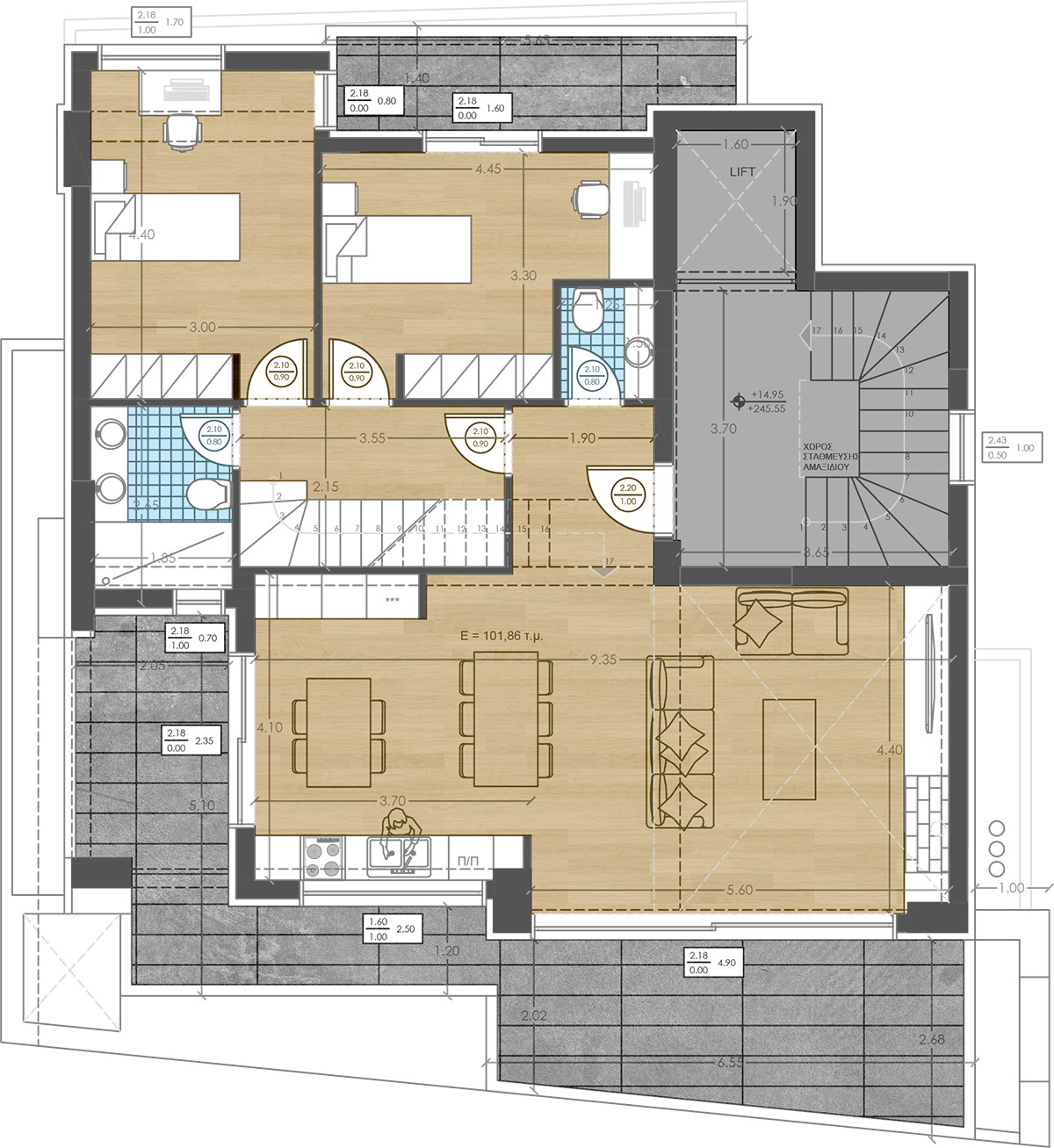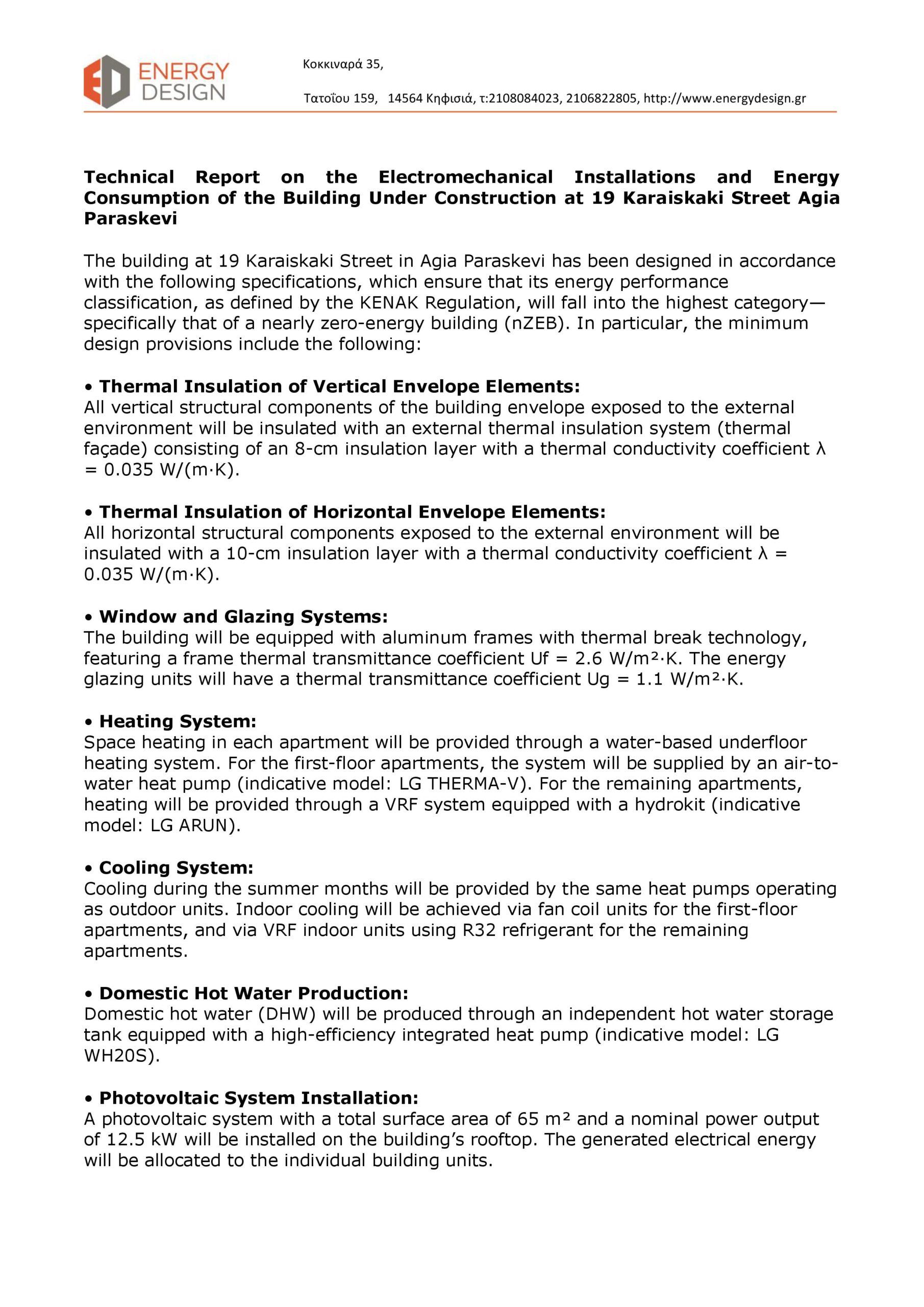 Every aspect of the project—from the internal layout to the façade design and overall architectural expression—reflects our core philosophy and the distinctive quality found in all our projects. Special attention has been given to premium materials, advanced installations, and energy-saving systems, ensuring that the building achieves nearly zero energy consumption, in full compliance with the Energy Performance of Buildings Regulation (KENAK).