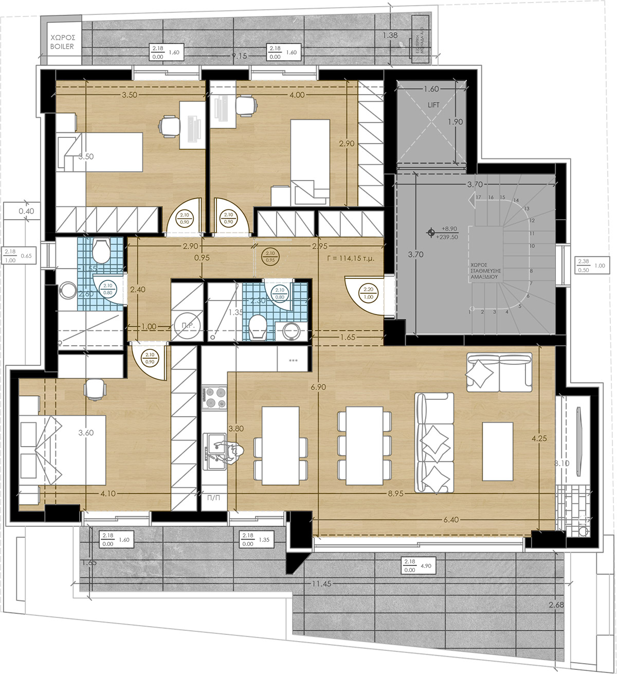 • 3rd Floor Entire-Floor Apartment – 114.15 m²